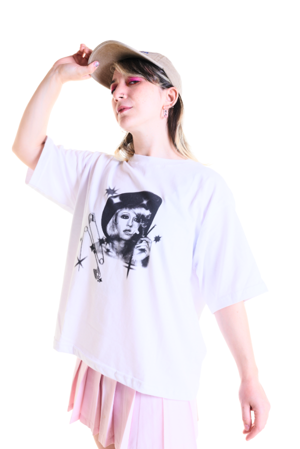 Remera calce "Boxy". Cuello redondo.